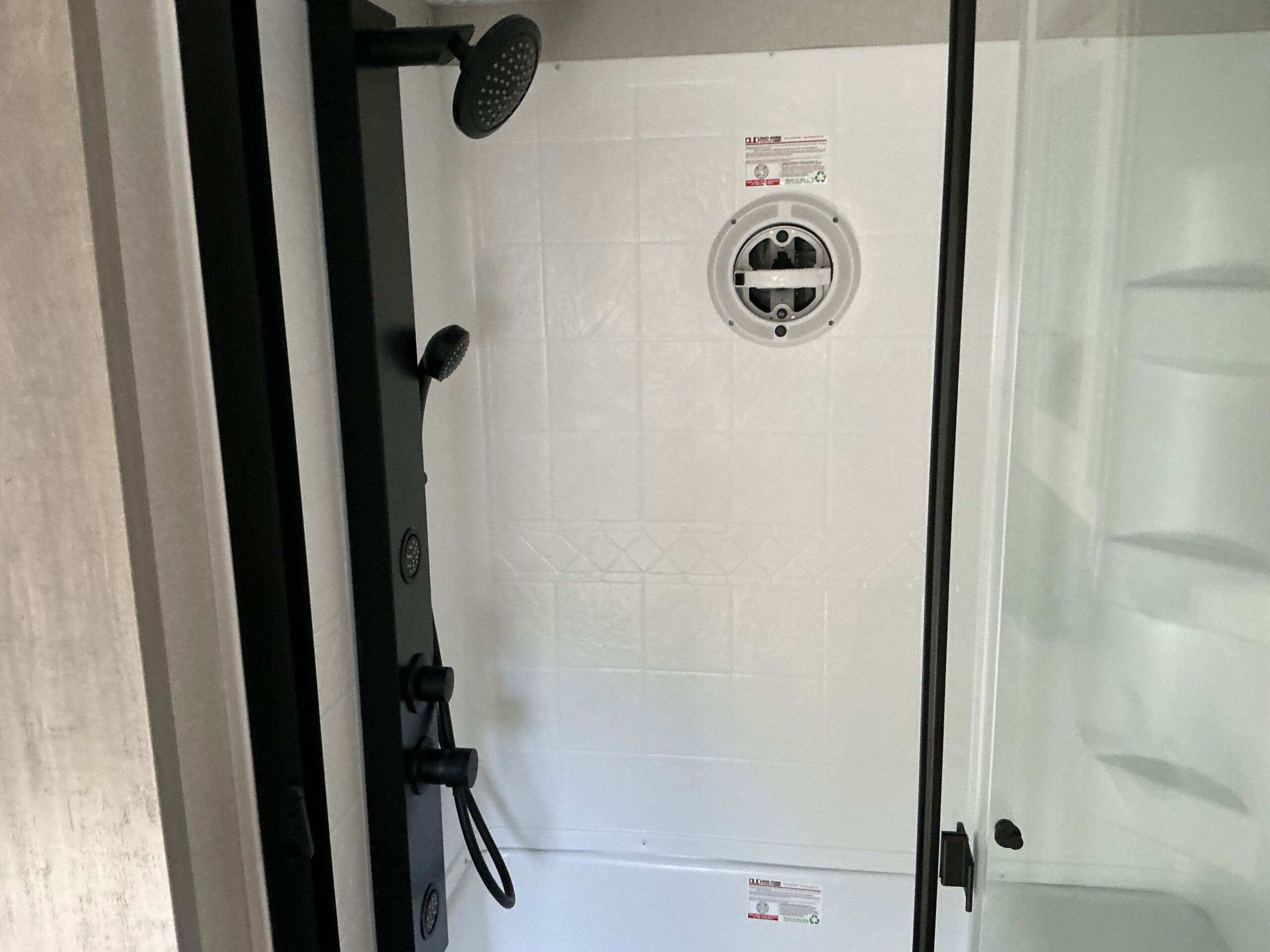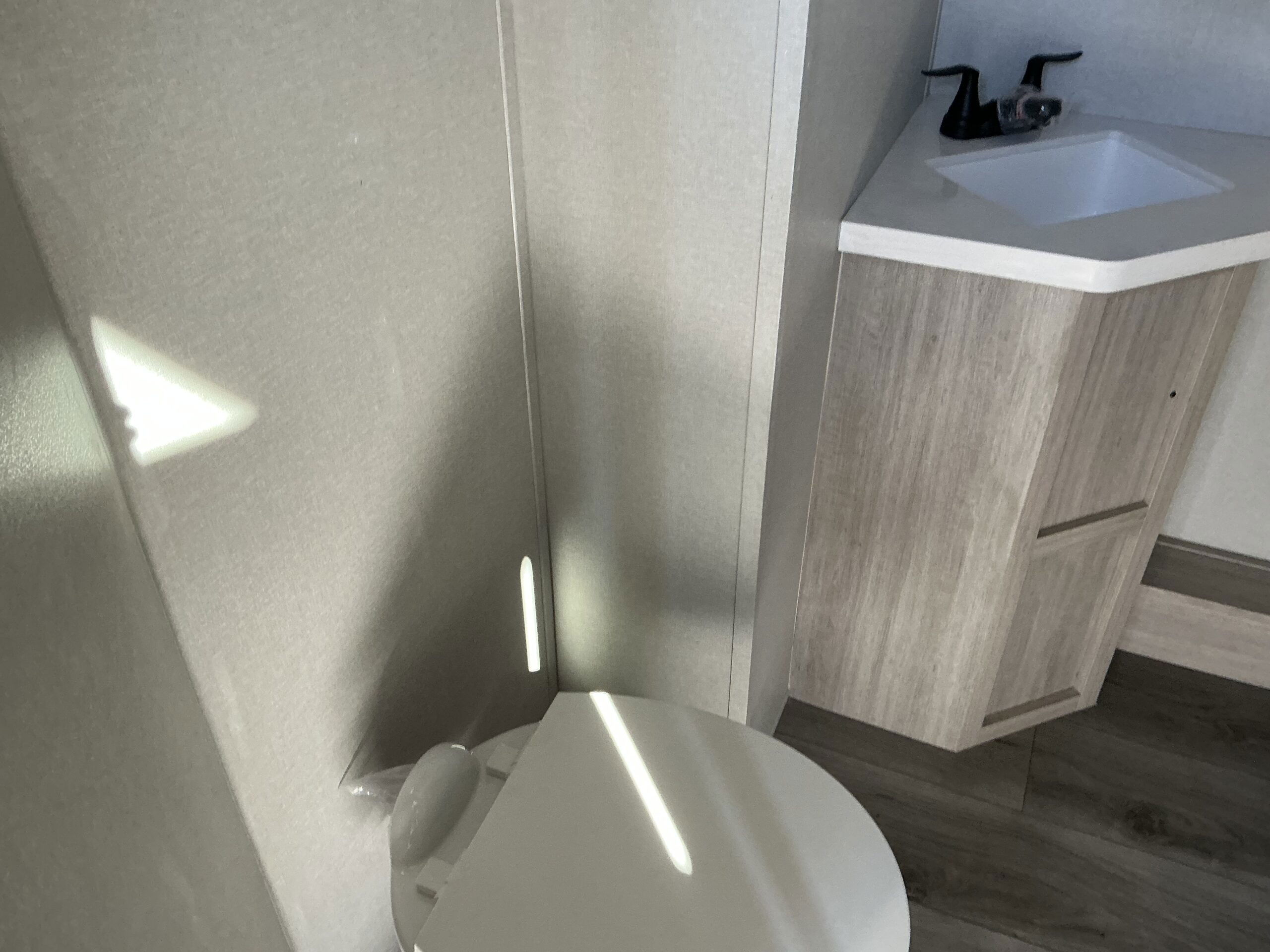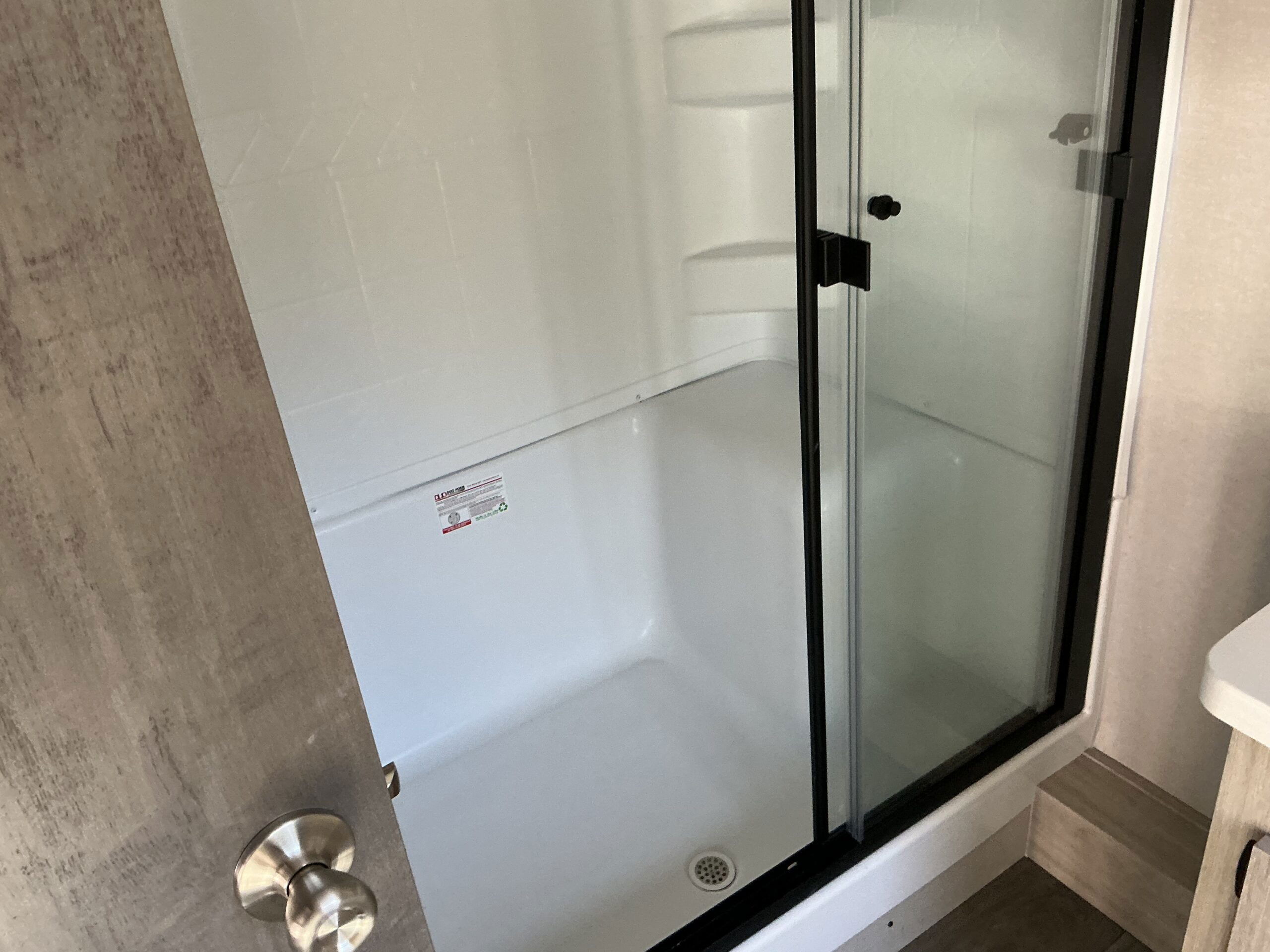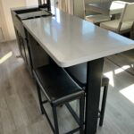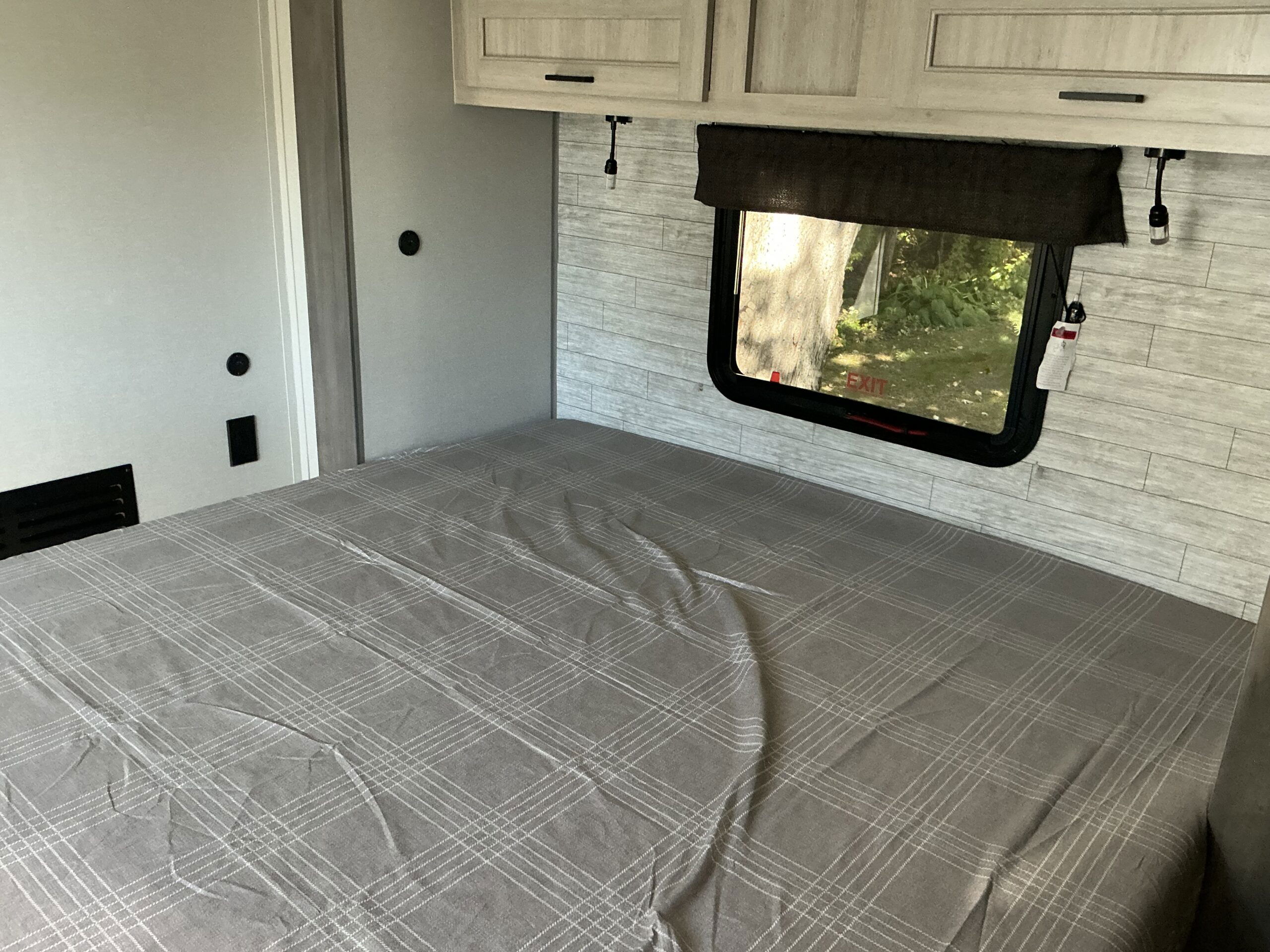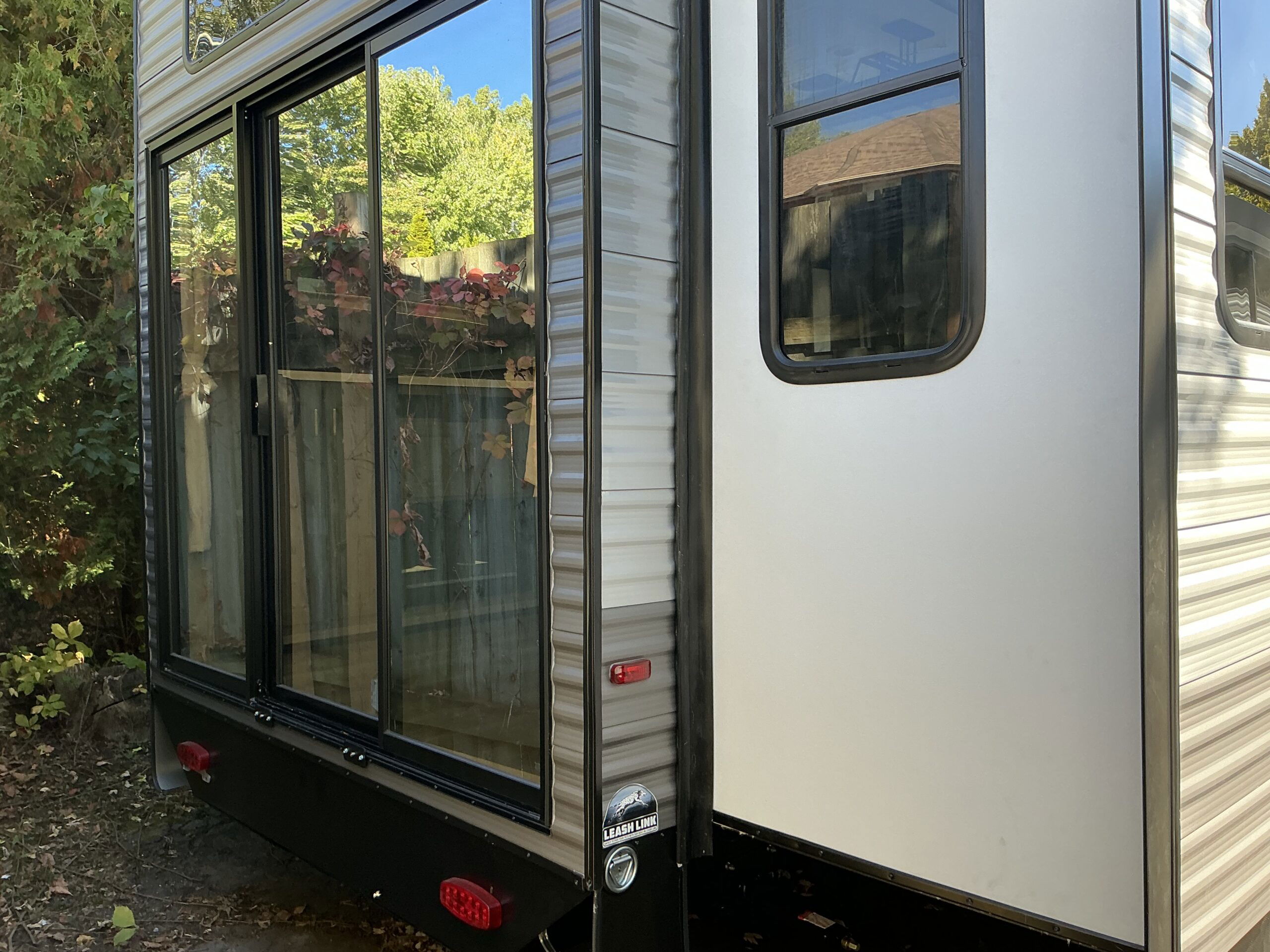 There is much to love about this destination trailer! Starting with the loft that has two queen beds, a wardrobe/storage, and a custom 58″ x 71″ bed. Downstairs there’s a private bedroom with a king bed slide, a fireplace, and its very own private full bathroom complete with a dual sink vanity. The main living area has a huge bi-fold sleeper sectional sofa so you can fit even more guests, or just relax and watch the TV on the power lift in the entertainment center. The kitchen is well-equipped with a residential refrigerator, microwave, and pantry. The centerpiece here is a kitchen island with a deep basin farm-style sink and bar stool seating so your group can gather together and make new memories. The second full bath has a roomy 36″ x 30″ shower with glass door, and just outside it is the stackable washer and dryer!